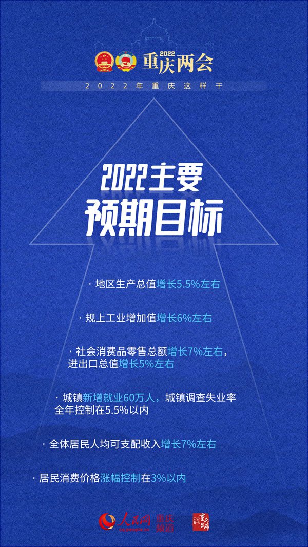 17日上午,重慶市第五屆人民代表大會第五次會議在重慶市人民大禮堂開幕。重慶市人民政府代市長胡衡華作政府工作報告。2022年重慶有哪些發展目標?有什么工作安排?人民網重慶頻道用一組海報帶你速看。
