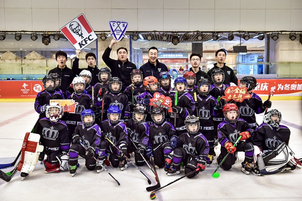 王子冰球隊的其他教練和隊員們一起為北京冬奧加油。重慶肯德基供圖