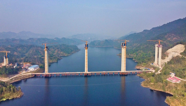 渝湘高速復線五布河大橋施工現場。巴南區交通局供圖