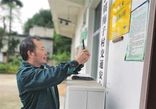 投遞員帥德華在石會鎮梅子村委會處完成打卡 攝/文國蘭