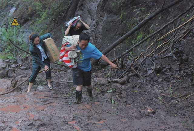 暴雨后,開州郵政員工冒著生命危險搶送郵件
