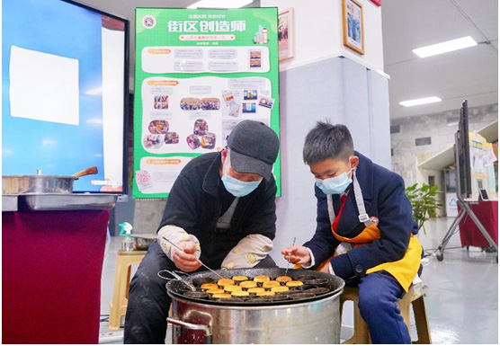 “X導師”教學生做熨斗糕。巴蜀小學供圖
