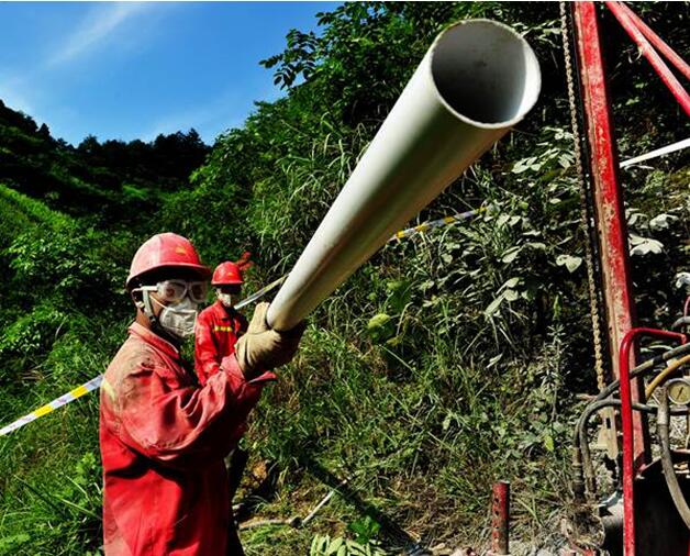 工區巖層破碎復雜,鉆井員工用套管確保井深質量。西南物探分公司供圖