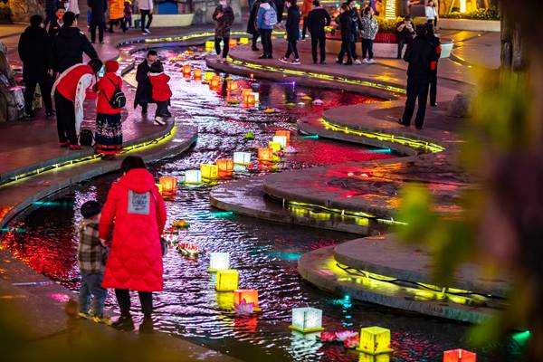 飄了一天細雨,多了三分寒意,暮色降臨,重慶市沙坪壩區三峽廣場華燈初上,火紅的燈光,讓山城添了七分年味。