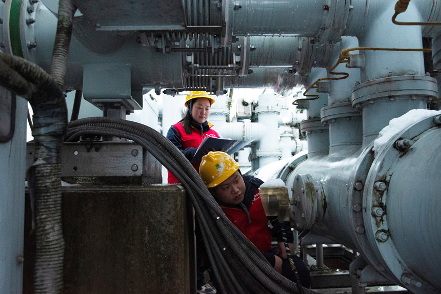 國網重慶城口供電公司員工程渝、劉家豪在220千伏集控站對融冰裝置進行紅外測溫。牟丹陽攝