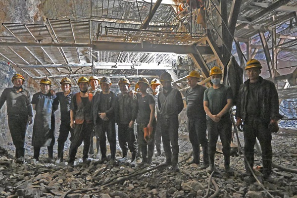 堅守在重黔鐵路的工友們拍下新年合照。中鐵八局一公司供圖