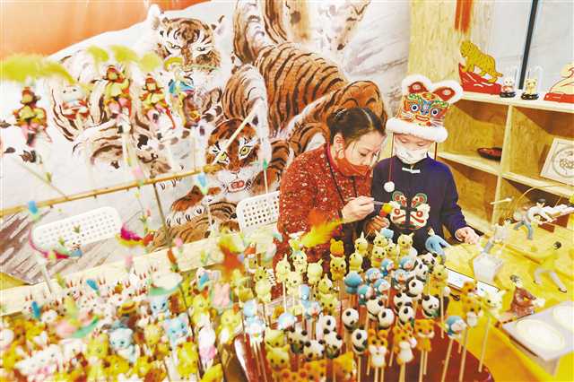 2月1日,重慶中國三峽博物館,重慶“面塑藝術”非遺傳承人正精心教小朋友制作面塑。特約攝影 鐘志兵/視覺重慶