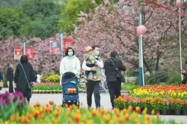 節日期間,南岸區文化旅游主題精彩紛呈,為就地過年的市民提供了新奇有年味的好去處。在長嘉匯大景區,各種主題展覽和活動扮靚城市會客廳。第三屆長嘉匯“新年藝術燈會”在彈子石老街展出,極光、沸雪、落日等自然奇景藝術燈光秀營造出濃濃的節日氛圍。重慶杜莎夫人蠟像館推出漢服游園和明星簽名照福袋抽獎,成了年輕朋友的歡聚地。在重慶故宮文物南遷紀念館,傳統國家級非遺項目——“梵華唐卡·大師展”持續展出,讓游客沉浸在傳統文化的回味當中。在南山地區,南山植物園的椿寒櫻、冬櫻及20萬盆郁金香盛放迎春,壹華里的馬戲萌寵樂園歡樂開園,以及抗戰遺址博物館和黃桷埡老街的主題展覽活動,讓南山的寒冬迸發出融融春意。