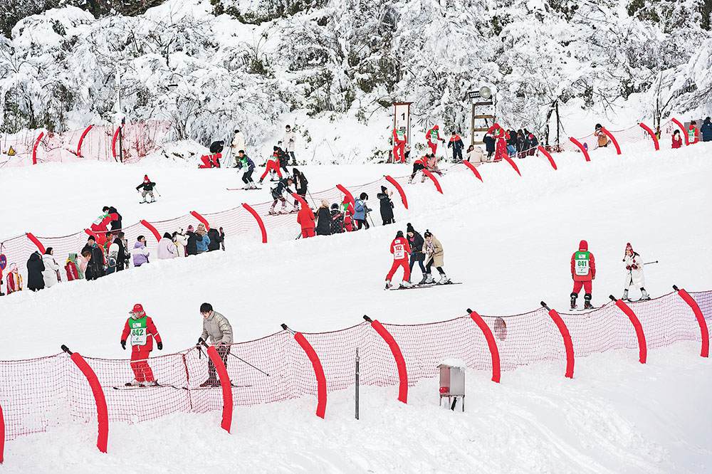 2月4日,南川區金佛山滑雪場,游客正在參加滑雪運動。春節假期,重慶高海拔地區迎來降雪,恰逢北京冬奧會舉行,重慶市民紛紛來到滑雪場感受冰雪運動魅力。通訊員 胡波 攝/視覺重慶
