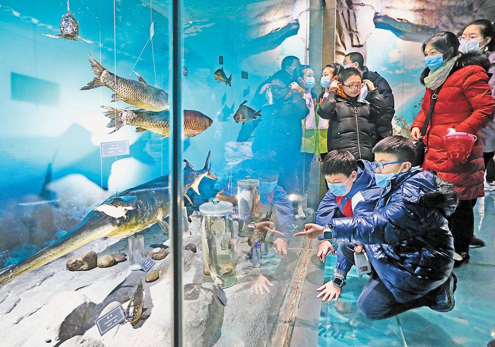 2月5日,重慶中國三峽博物館,游客正帶著孩子觀看了解重慶自然人文歷史。春節期間,家長們紛紛帶著孩子游覽三峽博物館,了解重慶的歷史變遷。 特約攝影 鐘志兵/視覺重慶