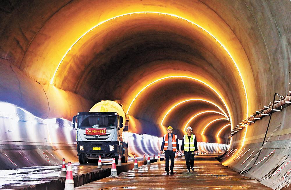 2月6日,在渝昆高鐵中梁山隧道項目工地,中鐵十一局的技術工人正在緊張施工。春節期間現場不停工,超過5000名參建人員堅守在一線崗位,保證預期施工進度。