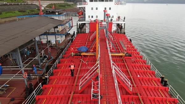 今年,在川維化工以及中國石化銷售版塊的共同努力下,主動整合船舶資源,促成了中國石化內部“油化聯動”。從今年起,油品船舶上行抵達重慶卸貨后,返程在川維物流碼頭經過嚴格的洗艙,按相關標準檢測合格后,運載川維化工甲醇產品返回下游。