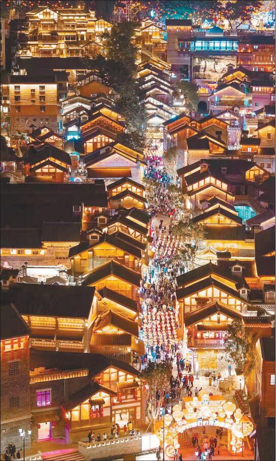 近日,重慶十八梯傳統風貌區高高掛起各式各樣的民俗文化燈飾,五光十色,流光溢彩,吸引眾多市民游客前往打卡。