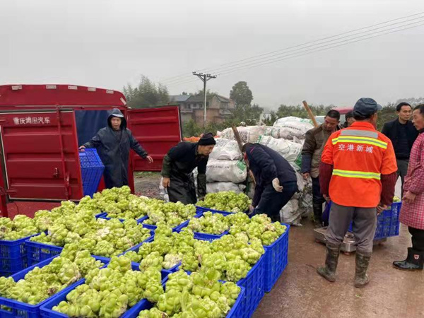 村民將采收的青菜整理裝車。銅梁區委宣傳部供圖