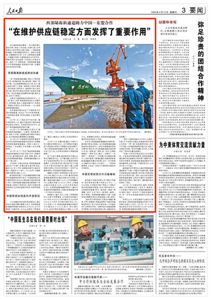 近年來,西部陸海新通道建設的新機制、新舉措不斷出臺落地。設立西部陸海新通道物流和運營組織中心,綜合協調通道的規劃發展和區域合作;成立陸海新通道運營有限公司,統一品牌、統一規則、統一運作;開展鐵海聯運“一單制”試點,建立“一次委托”“一次保險”“一單到底”“一次結算”的全程服務模式;上線中國首個跨境金融區塊鏈西部陸海新通道融資結算應用場景,運行一年為物流企業融資支付超過10億美元……一項項創新措施,正在進一步助力中國西部加速走向開放前沿。