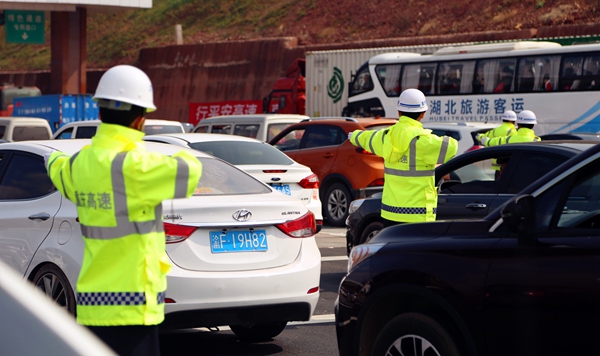 高速集團路巡隊員在G42滬蓉高速省際出口引導車流。受訪者供圖