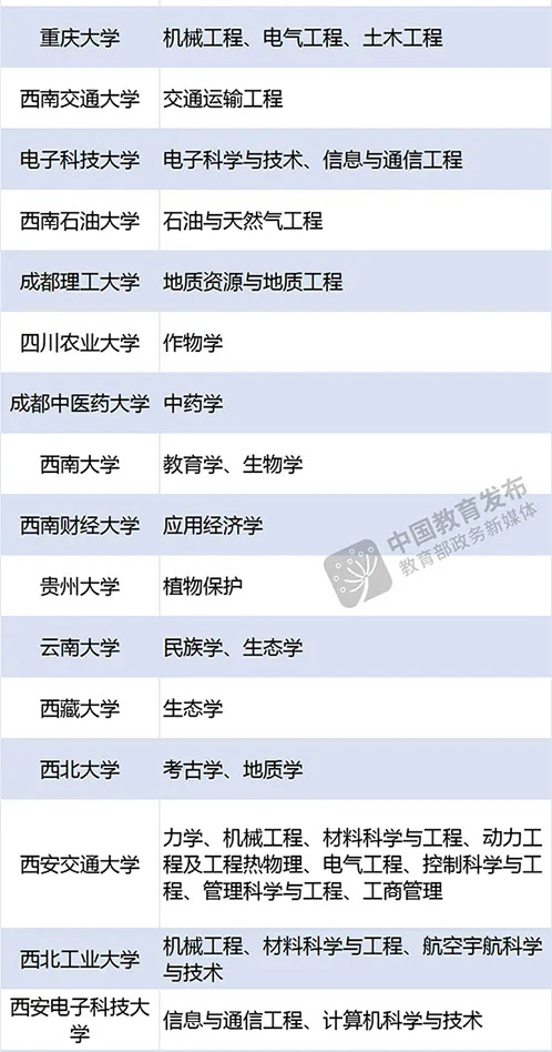第二輪“雙一流”建設高校及建設學科名單(部分截圖)