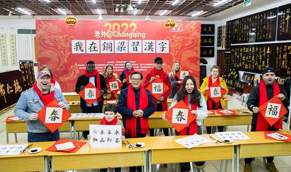 人民網重慶2月15日電 2月14日,來自俄羅斯等國家的十余名外國友人,在重慶市銅梁區參加“2022老外@chongqing·我在銅梁習漢字”文化活動;顒又,他們體驗節日民俗,感受中國傳統文化的魅力和濃濃的節日氛圍。