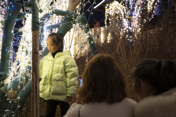 “火樹銀花元夕夜,彩燈萬盞熠霞流”的優美景色,吸引了不少市民前來打卡。人賞燈,燈伴人。大家呼朋引伴、三五成群漫步在花燈中,徜徉在“星辰”里,一邊欣賞燈光美景,一邊拿出手機拍照留影,用鏡頭記錄下歡樂與溫馨的美好時光,感受傳統佳節的喜慶氛圍。