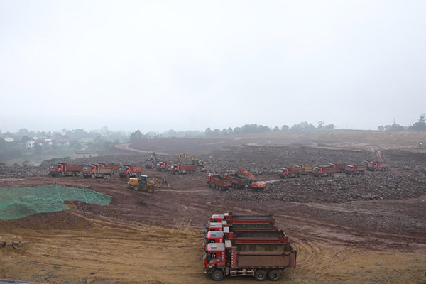 在金剛沱泵站施工現場,數十輛工程車和挖掘機正在進行開挖作業,現場一派熱火朝天。為保證工程進度,金剛沱泵站50多名施工人員在春節期間進行邊坡刷坡、邊坡框格梁基礎修整、施工道路修復等工作。