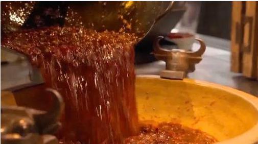 王文軍介紹,火鍋底料講究麻、辣、鮮、香,采用牛油、辣椒、花椒、姜、蒜、豆瓣為主要材料,再添加多種香料炒制而成。光是辣椒品種的選用和搭配都有考究,牛油的品質、原材料的選擇和配比、炒制的時長和溫度,任何一個細節都可能成為影響火鍋味道的關鍵因素。憑借一手炒料的絕活,巴倒燙從重慶的火鍋江湖中脫穎而出,從14張桌子起家,到如今300張桌面沿山勢錯落分布,占地約40畝,年接待顧客近30萬。
