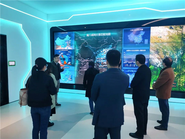 江北區政府相關負責人到豬八戒網參觀考察。豬八戒網供圖