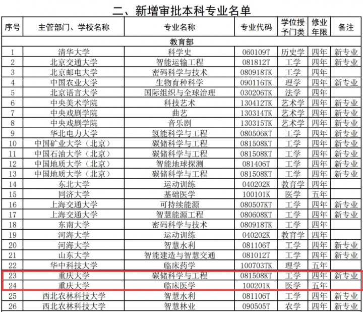 新增審批本科專業名單。華龍網-新重慶客戶端 發