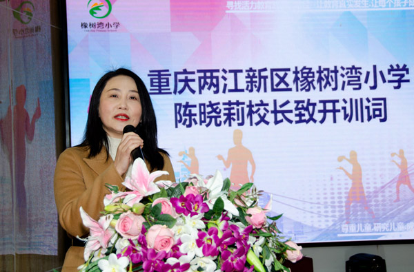 橡樹灣小學校長陳曉莉在大會上致辭,她表示橡樹灣小學將乘著“體教融合”的東風,全面開啟育人之花,使更多的體育運動項目在學校蓬勃發展,走向專業,力爭為重慶市競技體育輸送更多的人才。