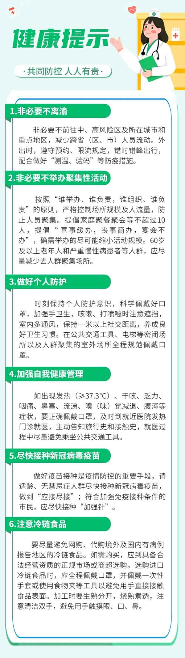 重慶市疾控中心還提醒,有重點時段和地區旅居史、搭乘過對應時段交通工具的來渝返渝人員,在做好個人防護的前提下,第一時間向社區(村)、單位、賓館酒店民宿等報告或通過“社區報告二維碼”填報個人信息,按要求配合做好核酸檢測、隔離觀察、健康監測等防控措施。
