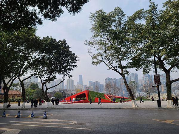 日前,軌道2號線曾家巖站新建升級的2號出入口開通。該項目位于重慶市中山四路北段起始端交叉路口處,外形如一顆紅色五角星,配合地面鋪裝的立體星星燈飾,美觀又大氣。