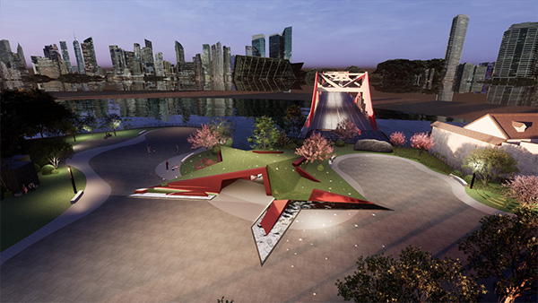 據介紹,該出入口以“城市之星”為設計理念,考慮建筑與周邊環境關系,采用地景建筑的設計手法,從視覺上減少建筑構筑物對周邊環境的影響,將構筑物融于整體環境中,使入口構筑物消隱在城市天際線中。其不僅作為一個普通的軌道交通出入口,也是中山四路的景觀節點,屬于城市文化重要展示的一部分,展示城市的精神風貌。