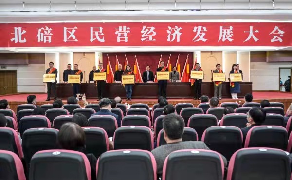 北碚區為民營經濟先進集體代表授牌。代宇航攝