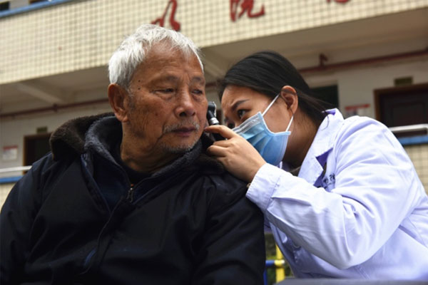在古南街道,綦江區中醫院和當地社區衛生服務中心的醫務人員來到敬老院,為老人們進行耳朵檢查,發現敬老院大部分老年人聽力下降是因為盯眝栓塞所引起,醫務人員現場教授了大家耳部穴位按摩方法,幫助大家改善聽力;同時,對大家關于耳部的咨詢問題進行了詳細解答。