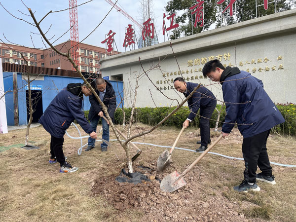 師生共同種桃樹。兩江育才中學供圖