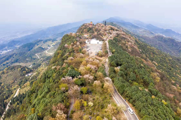渝北區大盛鎮云龜山萬畝野櫻花迎春綻放。大盛鎮供圖