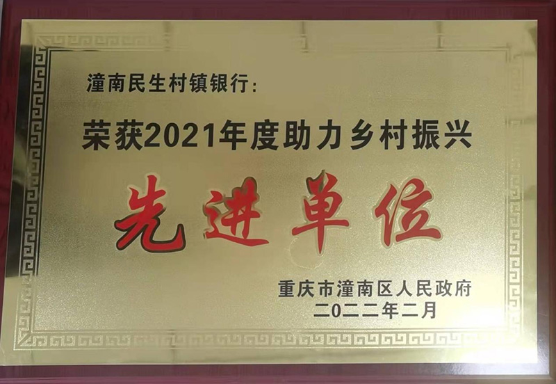 潼南民生村鎮銀行獲評潼南區“助力鄉村振興先進單位”