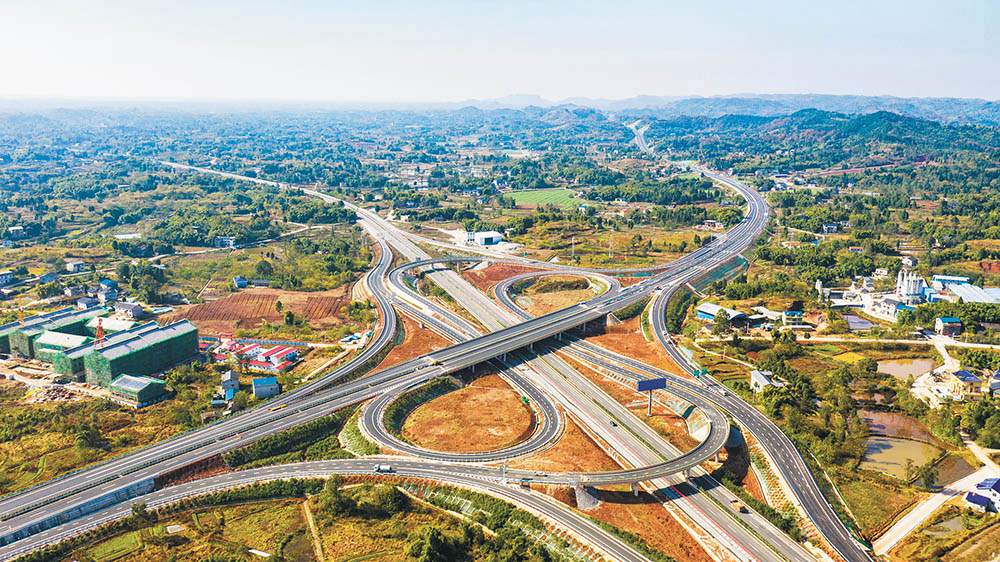 2021年12月24日,重慶大足至四川內江高速公路重慶段通車。自成渝地區雙城經濟圈啟動建設以來,川渝兩地高速公路建設按下“快進鍵”,目前川渝之間在建高速公路有5條,規劃待建高速達7條。(資料圖片)記者 齊嵐森 攝/視覺重慶