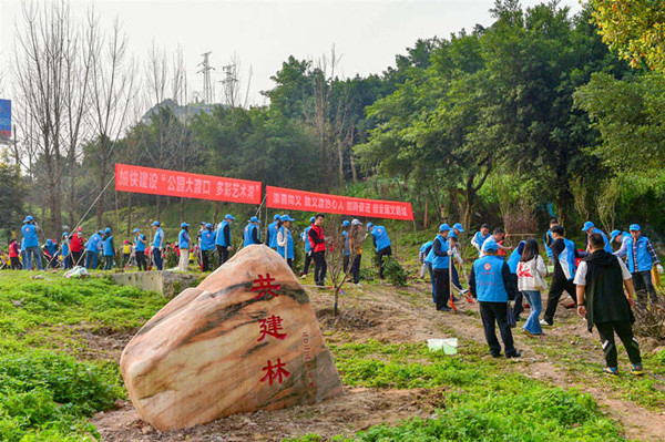 大渡口區八橋鎮“文明行為促進月”暨義務植樹活動在萬有社區公園舉行。楊宇豪攝