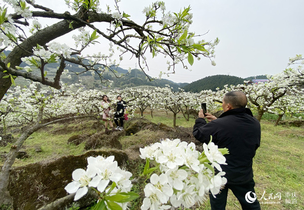 人民網重慶3月12日電 (劉政寧)春光明媚,正是踏青賞花的好時節。近日,位于重慶市合川區雙鳳鎮的萬余畝李花、桃花競相綻放,李花如同白雪覆蓋在枝頭,點綴于青山綠野之間,吸引不少市民游客紛紛前來賞花觀景、游園踏青。