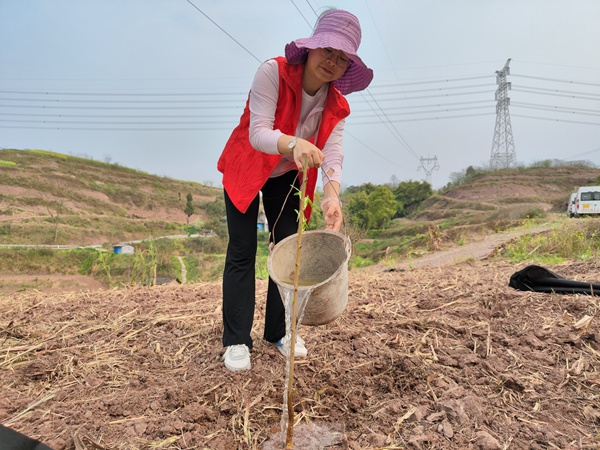 志愿者為種下的小果苗澆水。夏瑞雪攝