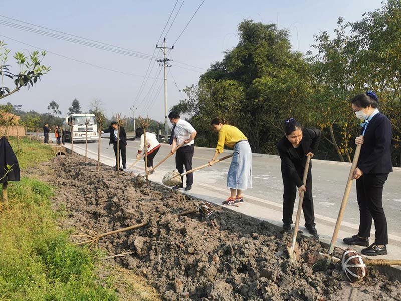 經過近1個小時的辛勤勞動,以重慶市花山茶花為主的40余株新苗昂然挺立、生機勃勃,植樹的隊伍、新植的樹苗與山城美好的春天融為一體。