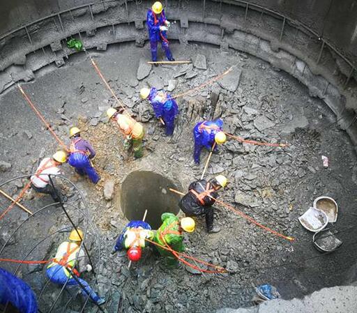 城開特長隧道排風豎井內輪廓直徑7m,最大開挖直徑8.8m,井深303m。B2標項目副經理文素向記者介紹,“因隧道距離長,洞內施工及通車運營階段存在通風條件差等情況,豎井相當于垂直設置一根”煙囪“,將山頂新鮮空氣送入隧道內,向隧道內部供給新鮮空氣,還可將隧道內污染氣體從井口排出,形成循環通風系統?!?/p>
