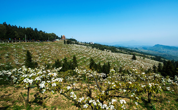 放牛坪梨花具有非常明顯的特點,一是梨花花期長。梨園基地海拔落差近500米,由于海拔的原因,山上和山下的氣候影響了梨花開放時間差。梨園的梨花從山腳到山上,每日的景色都有不同,層層疊疊,依次盛開。二是梨園規模大,梨園基地共有梨樹1.4萬畝,帶動周邊村新發展特色梨產業0.6萬畝,是重慶規模最大的梨園基地。