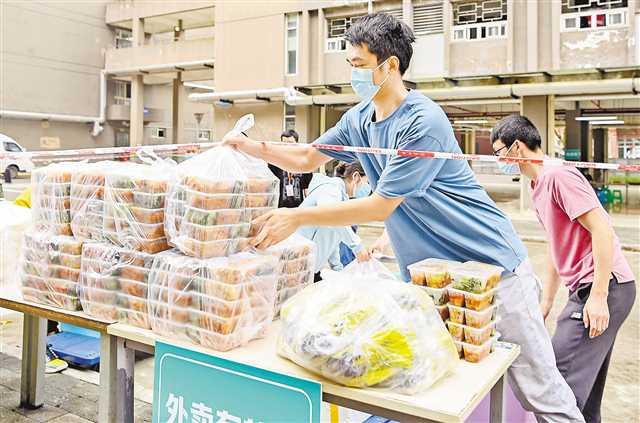“送快遞是最惱火的!焙稳鹛寡,“房客”們每天的包裹會放在隔離點的大門口,消殺后由專人統一轉運到宿舍樓前的指定點,然后他們一一核對信息,把同一層樓的包裹分揀到一堆,再送到各個房間門口。