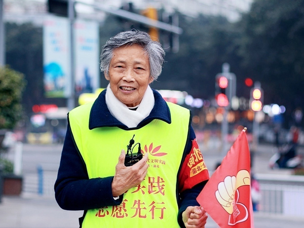 越來越多的人受到費敏秀的影響,紛紛加入志愿者行列,既有退休教師、干部,也有小學生,還有一支以費敏秀命名的交通勸導專業志愿隊——“費婆婆”志愿隊,如今已有四五百人的規模。費敏秀也不再僅僅是志愿者,更是新加入志愿者們的引路人。