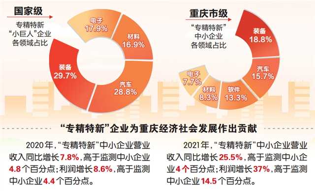 今年2月,重慶出臺的推進“專精特新”企業高質量發展專項行動計劃更是提出了“到2025年,全市創新型中小企業達到2.5萬家;市級‘專精特新’中小企業達到2500家;國家專精特新‘小巨人’企業達到300家”等一系列目標。