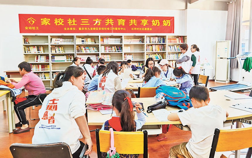 九龍坡區石坪橋街道,“共享奶奶”項目有效解決了雙職工家庭接送孩子放學的問題。(石坪橋街道供圖)