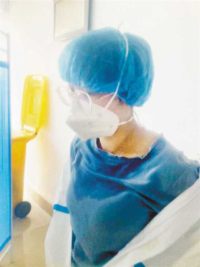 脫下防護服,志愿者發現衣服被汗水打濕了。