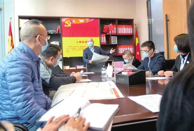 江北城街道金融城3號樓宇黨群服務站內,街道組織非公企業的黨員代表學習