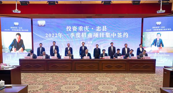 3月25日,重慶市忠縣舉行“投資重慶·忠縣”2022年一季度招商項目集中簽約活動,19個項目落戶忠縣,正式合同投資105.64億元。